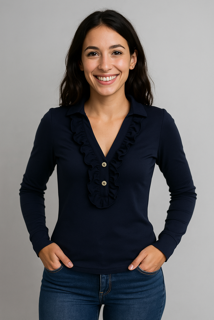 MAGLIETTA DONNA NERO GIARDINI ART 61120 MANICA LUNGA IN MAGLINA IN JERSY MANICA CON POLSINO E BOTTONE SCOLLO A V CON  ROUGE. OTTIMA VESTIBILITA' E CONFORT.