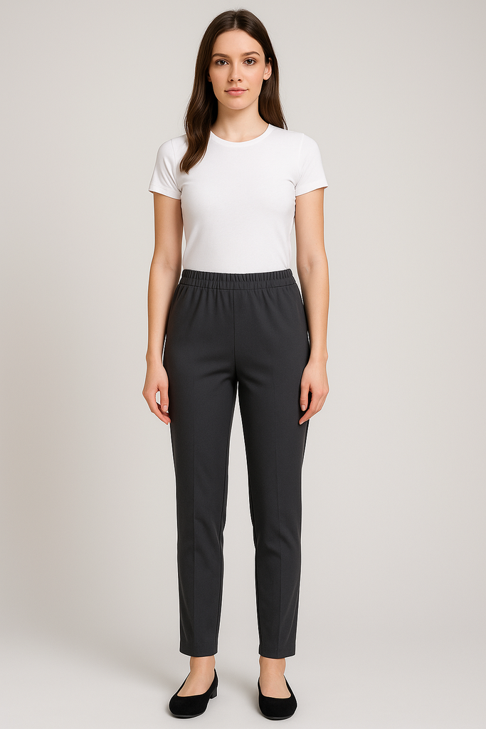 El.Ma. propone questo pantalone da donna articolo 612, modello classico con elastico in vita, felpato all'interno.