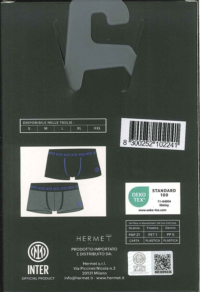 HERMET per INTER propone questo pacco con 2 boxer bicolor da uomo articolo I001 con elastico in vita con scritta.