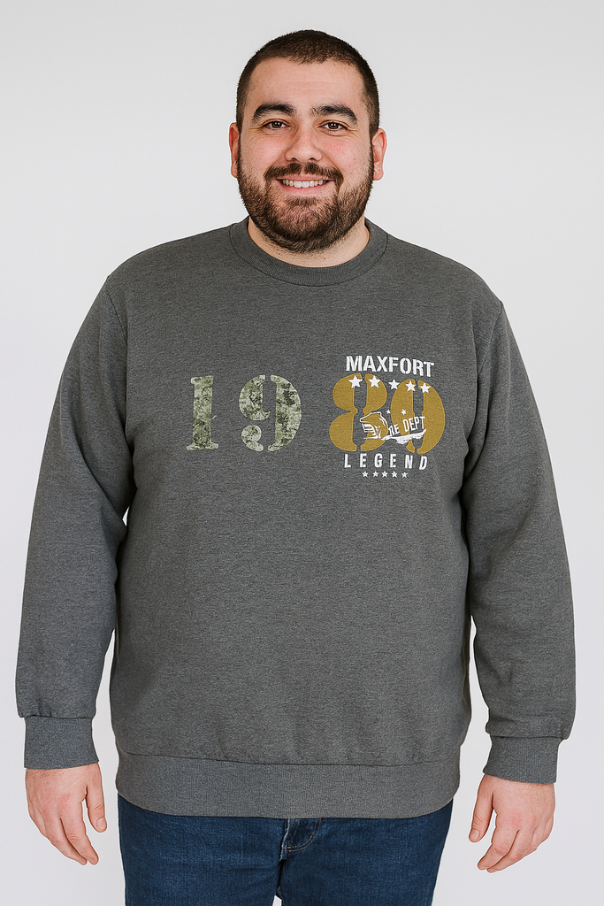MaxFort propone questa felpa conformata da uomo articolo 28404, modello girocollo, con stampa sul davanti, polsini ed elastico sul fondo.