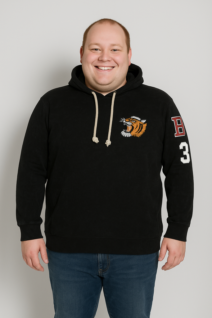 Max Fort propone questa felpa da uomo articolo 38353, modello con cappuccio, vestibilità taglie forti.