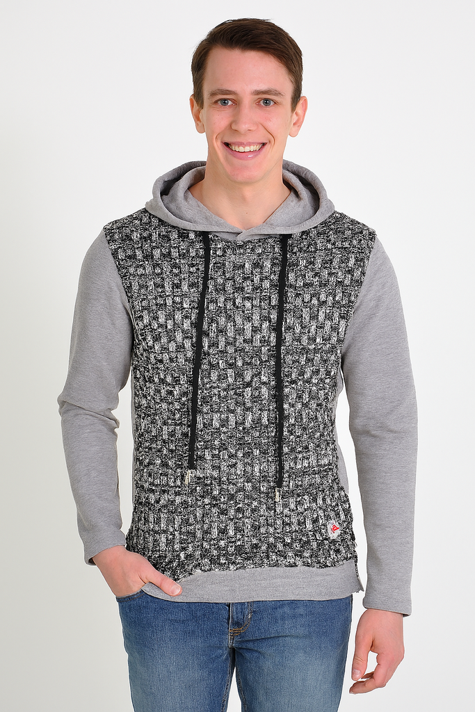 X-CAPE propone questa felpa da uomo articolo UMBY modello con cappuccio, inserto in maglia sul davanti e zip laterali.