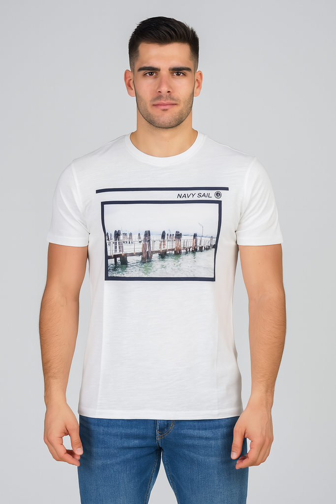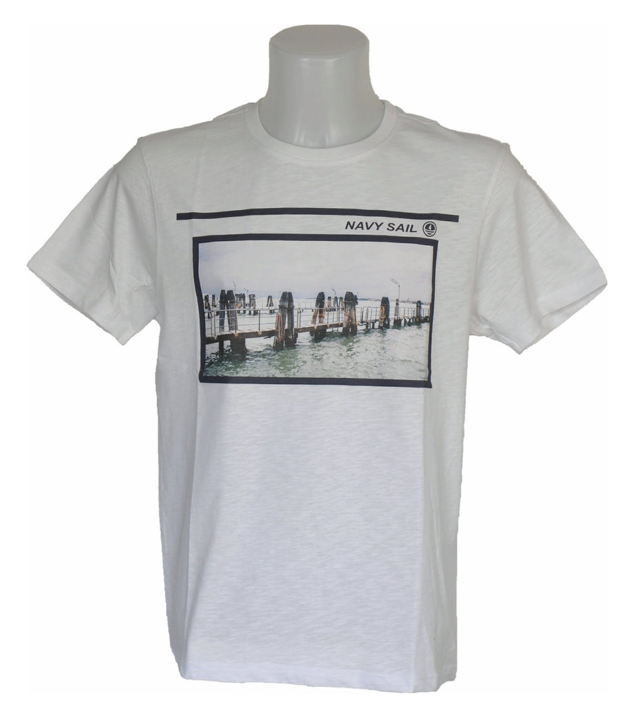 Navy Sail propone questa T-shirt da uomo articolo 31069, modello girocollo, con stampa sul davanti.