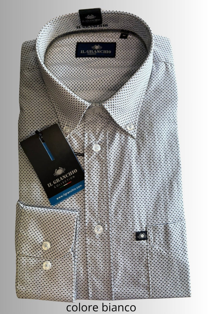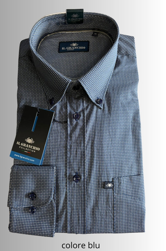 CAMICIA UOMO GRANCHIO VESTIBILITA REGOALRE BOTTONCINI TASCHINO PURO COTONE ART DIPLO MANICA LUNGA