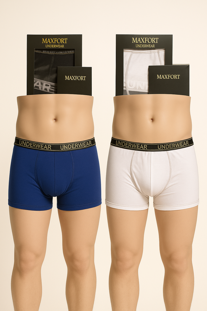 MAXFORT propone questo bipack contenente 2 boxer uomo calibrati ART.280 in cotone elasticizzato con elastico in vita