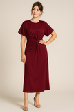 Abito donna Myastreet elegante e fluido, realizzato in tessuto raso 100% poliestere. Il modello lungo presenta scollo a giro, maniche corte a kimono e drappeggio al punto vita che valorizza la silhouette. Sul retro, l’allacciatura a goccia con bottone completa il design raffinato. Un capo chic e sofisticato, ideale per occasioni speciali o serate eleganti.