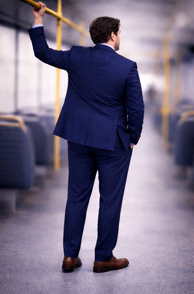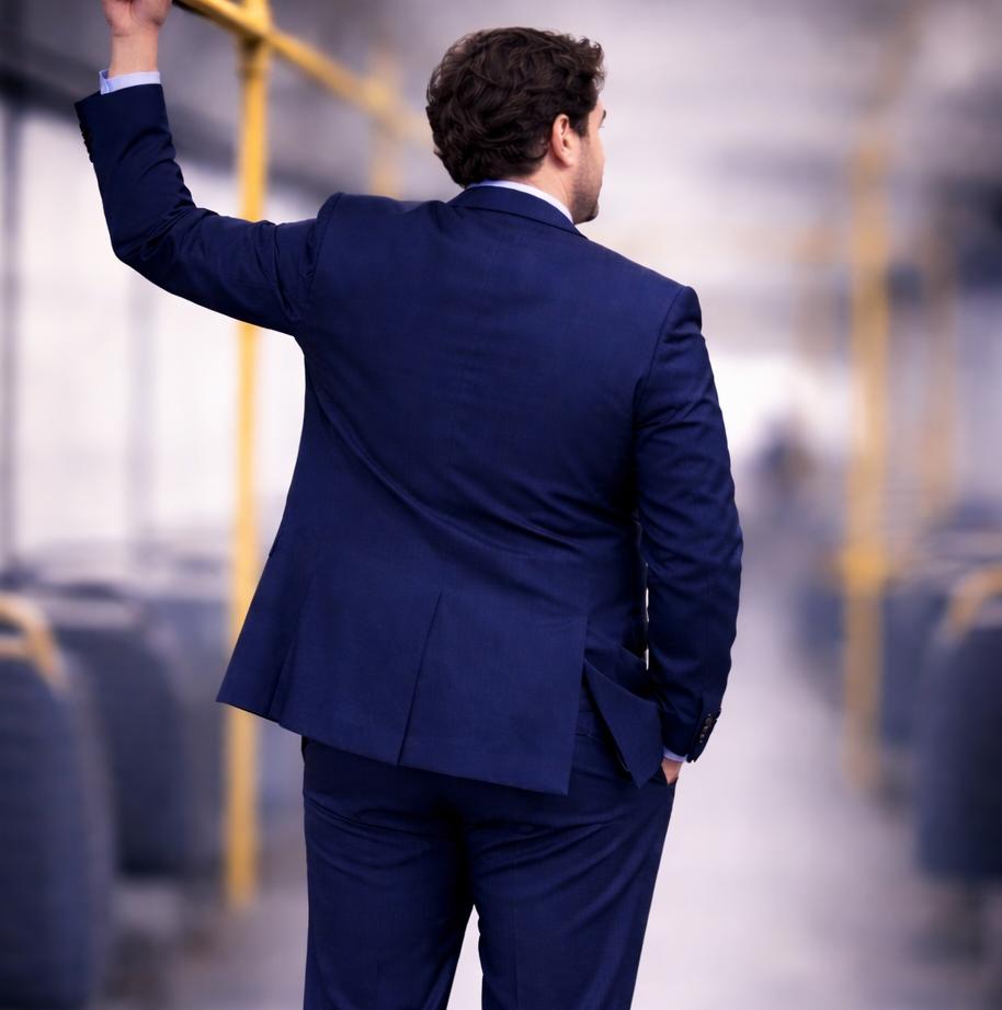 • Giacca: 2 bottoni, tasche con aletta, taschino, doppi spacchi