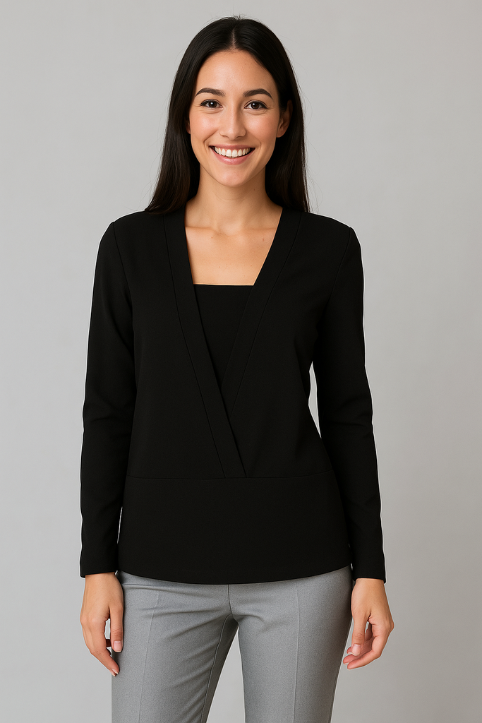 CAMICIA ABBA MODA ART CA9155ESA MANICHE LUNGHE CON POLSINO  TAGLIO IN VITA SCOLLATURA PARTICOLARE CON PIEGHE VERTICALI E FINTO TOP SOTTO.