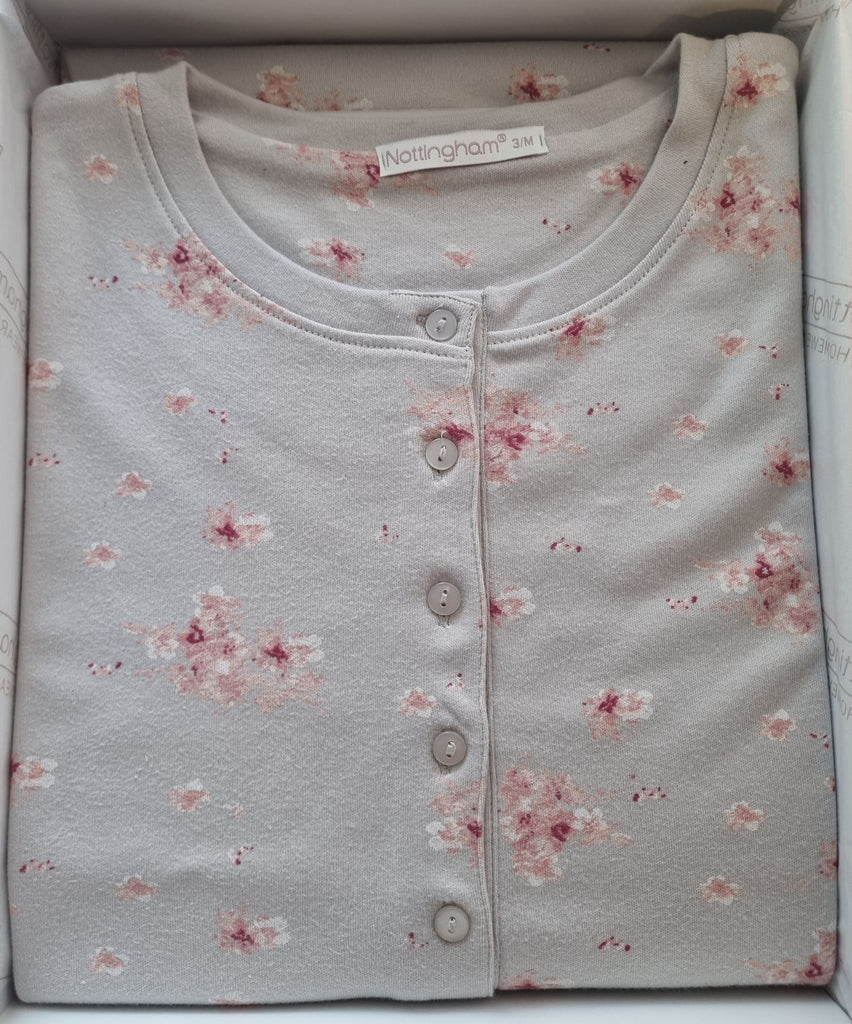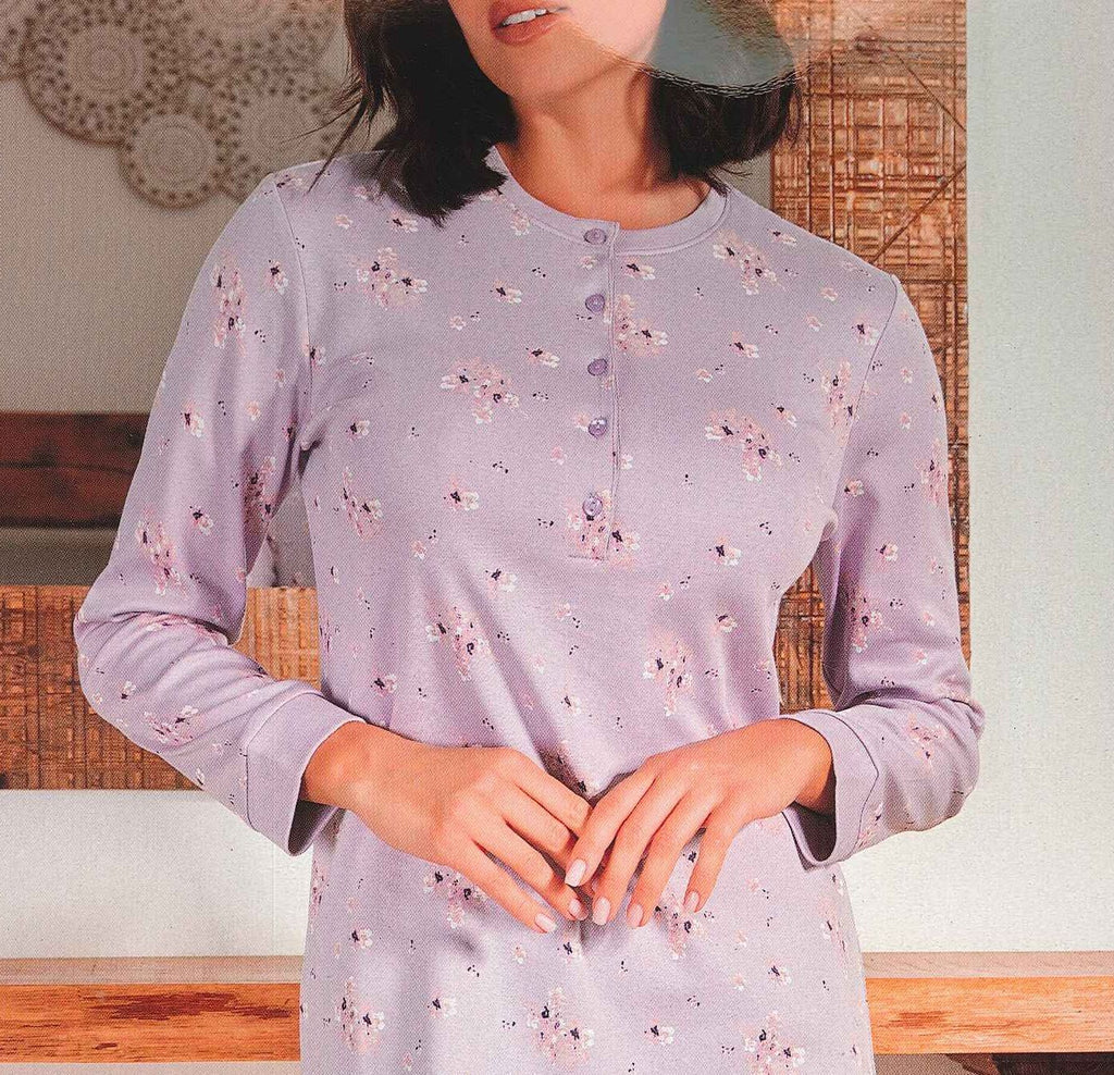 NOTTINGHAM propone questa camicia da notte da donna ART. NPA439 in termo cotone, fantasia floreale e allacciatura a serafino con bottoni