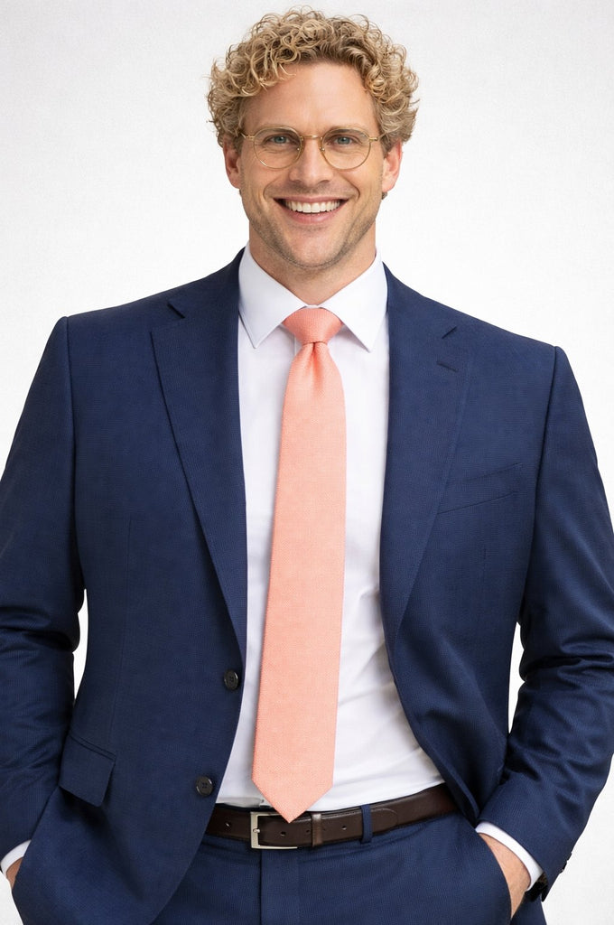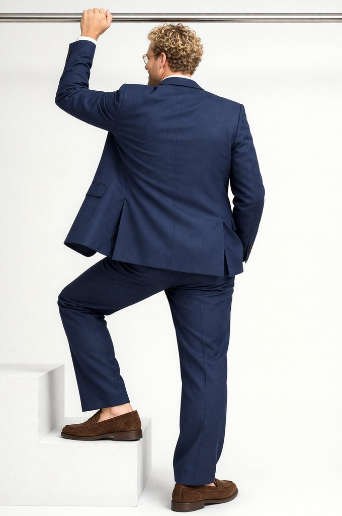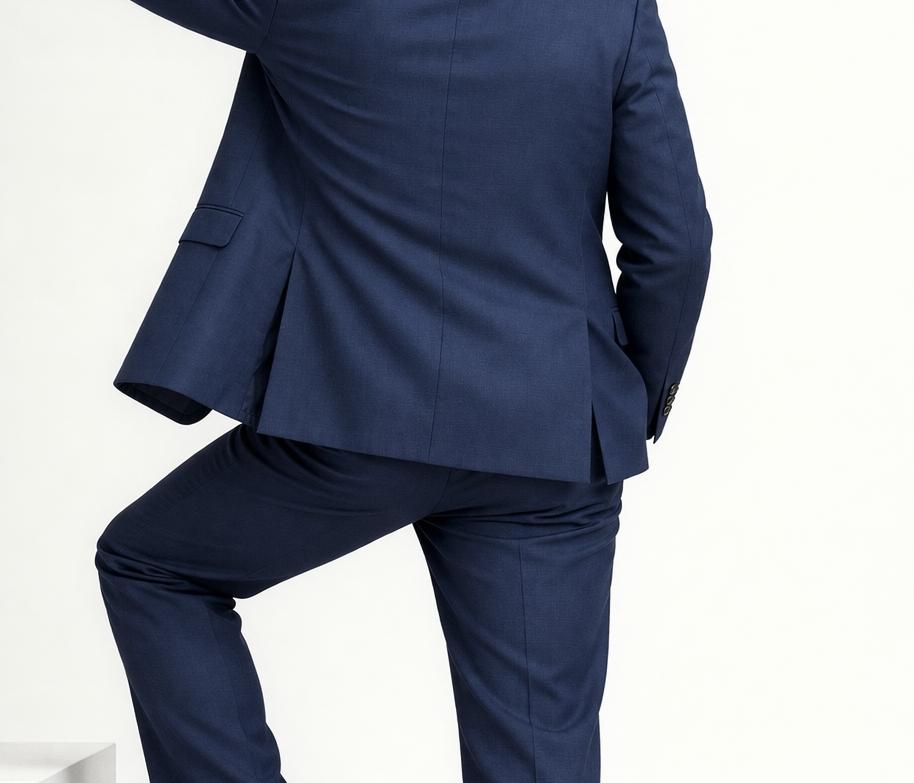 La microfantasia del tessuto dona profondità e raffinatezza, rendendolo perfetto sia per contesti lavorativi che per occasioni formali. La giacca a due bottoni, abbinata a pantaloni dal taglio classico, crea un look equilibrato e versatile.