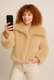 Ecopelliccia da donna Griffai dal design elegante e avvolgente. Modello con ampio collo che dona un tocco raffinato e caldo, allacciatura con bottoni a pressione e pratiche tasche laterali. Realizzata interamente in poliestere, offre morbidezza, comfort e protezione nelle giornate più fredde. Un capo versatile e di tendenza, perfetto per completare look casual chic e serali.