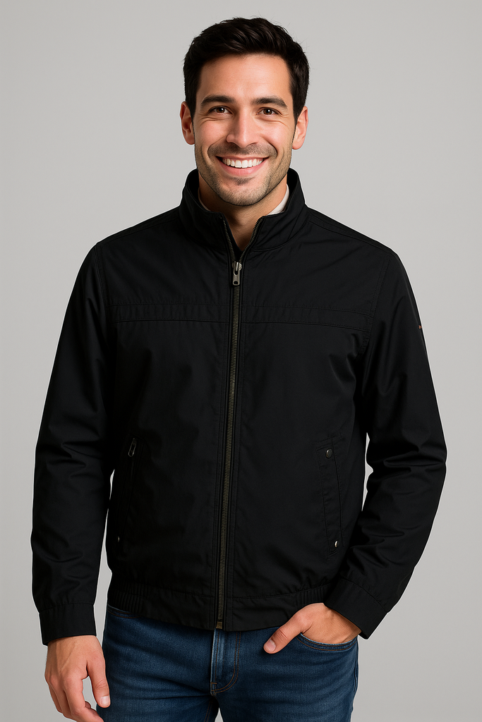Cabano propone questo giubbino da uomo articolo 5101 31911, modello con due tasche laterali con cerniera, tre tasche interne, polsini regolabili con bottoni a pressione, elastico sul fondo e allacciatura con cerniera sul davanti.