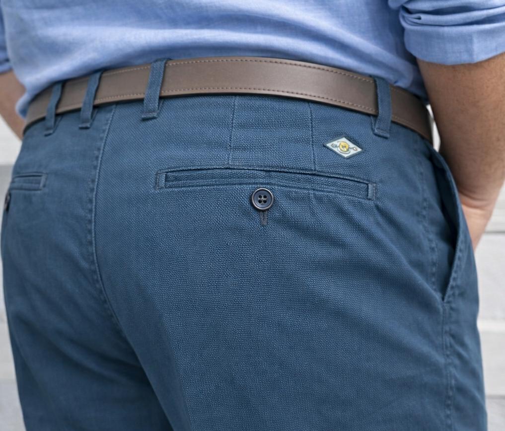 Il modello presenta tasche alla francese, chiusura con bottone e cerniera e passanti per cintura, mentre sul retro sono presenti tasche a filetto con bottone che completano il design con un tocco classico e raffinato. Ideale sia per look casual curati sia per abbinamenti più eleganti.