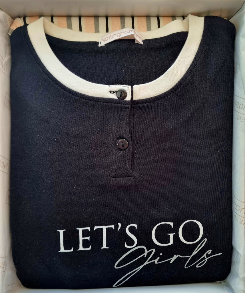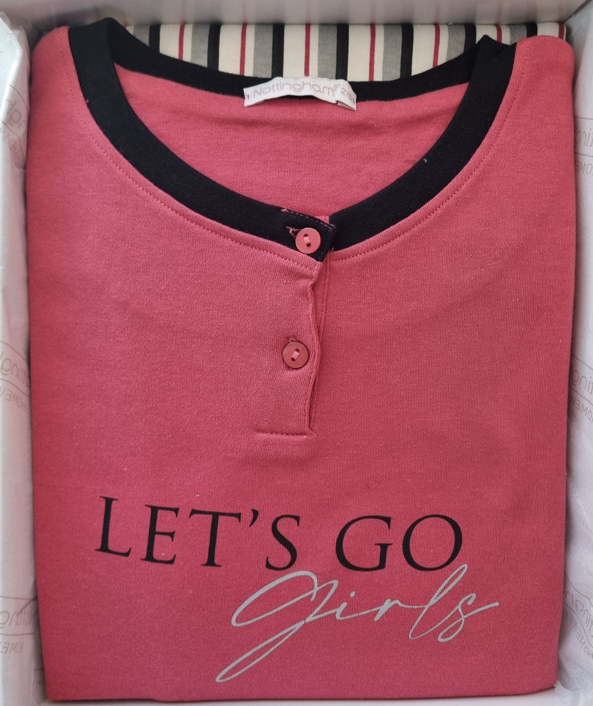 Pigiama Donna Nottingham Interlock Maglia Serafino con Stampa e Pantalone Fantasia a Righe