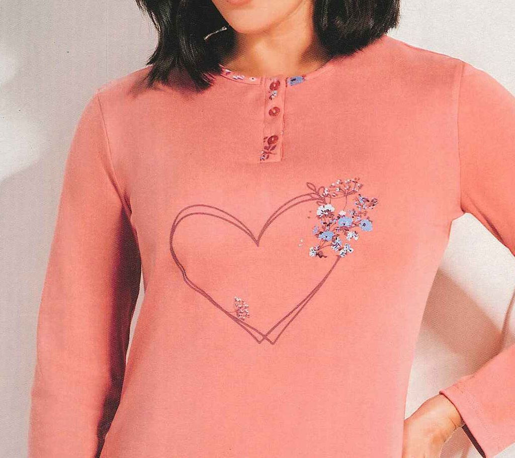 Pigiama con maglia a serafino con bottoni e stampa con cuore.