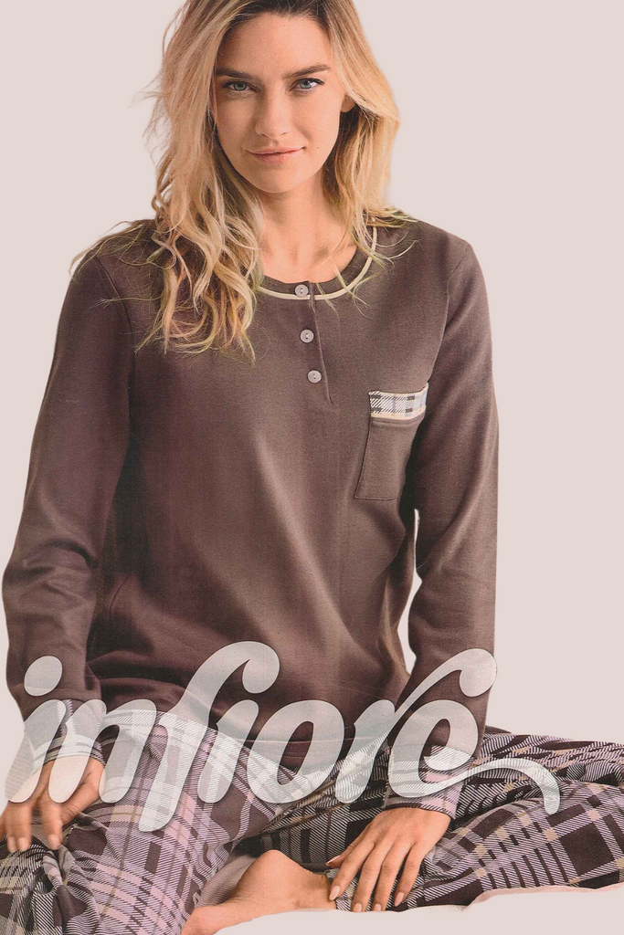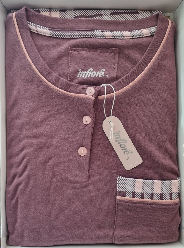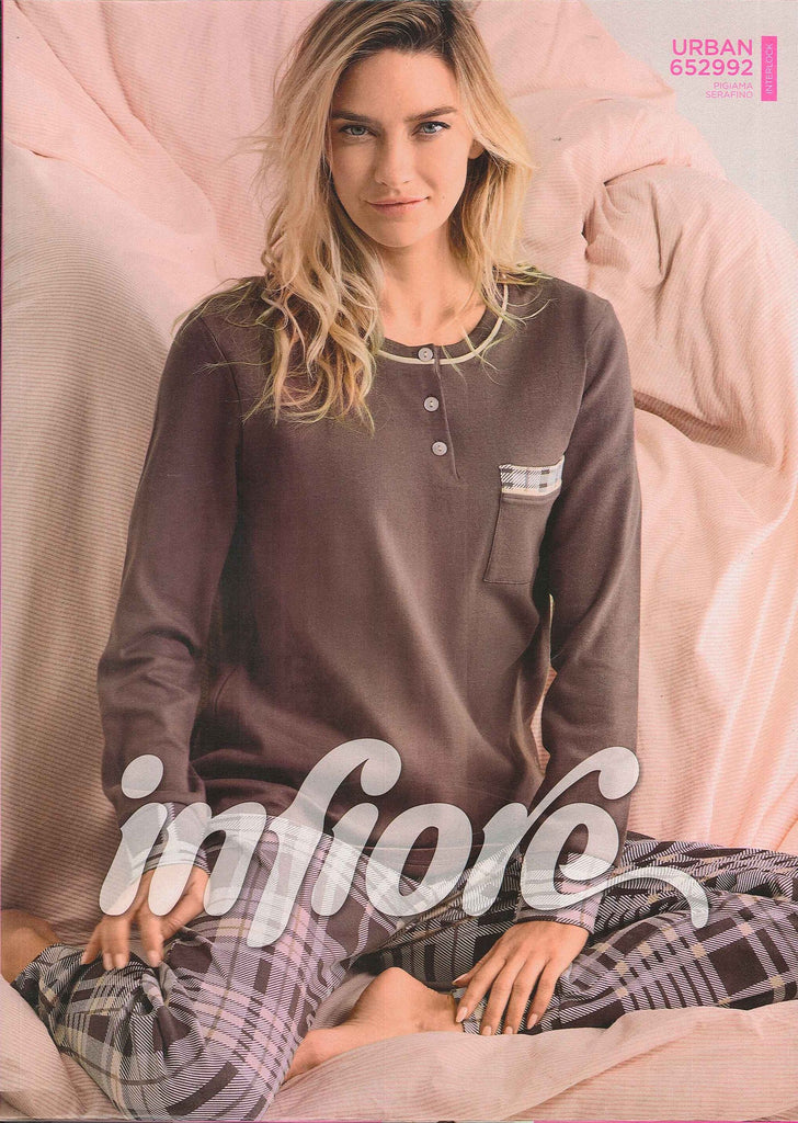 INFIORE propone questo pigiama donna ART. URB652992 in termo cotone con maglia a serafino in tinta unita, taschino e polsini.