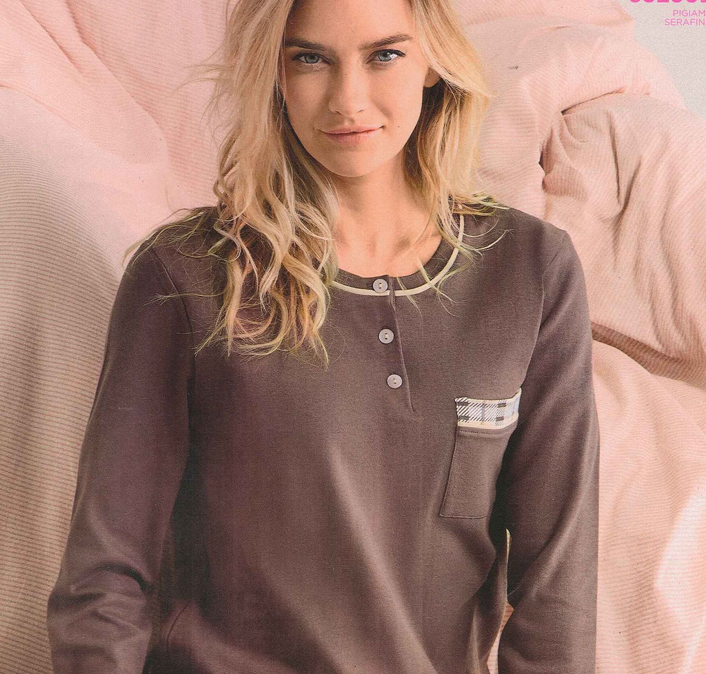PIGIAMA DONNA TERMO COTONE SERAFINO BOTTONI TASCHINO SCOZZESE INFIORE ART. URB652992
