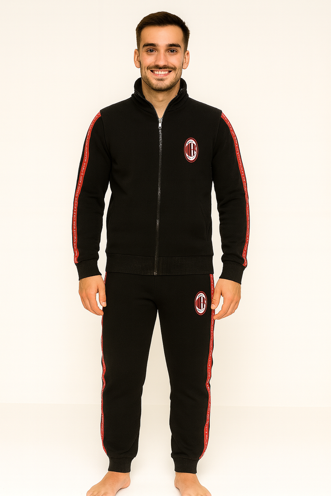L'azienda SICEM per MILAN propone questo pigiama/tuta uomo Art.MI14134 con giacca a mezza zip, logo e polsini.