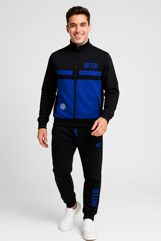 L'azienda HERMET propone questa tuta uomo/ragazzo INTER in cotone felpato ART. IF101140 con felpa con logo, zip e polsini.